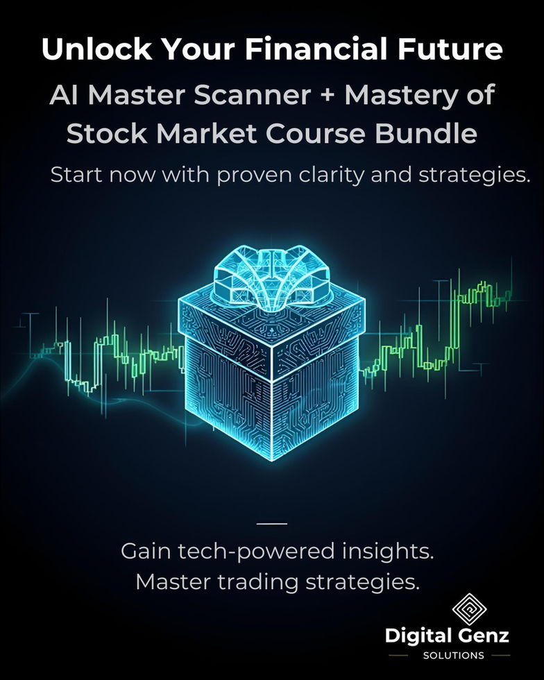 Unlock unparalleled success in trading with the AI Master Scanner + Mastery of Stock Market Course Bundle at Digital GenZ Solutions. This powerful package combines cutting-edge AI technology to scan market trends with an in-depth course designed to turn you into a stock market virtuoso. Perfect for digital-savvy enthusiasts and ambitious traders, our bundle ensures you stay ahead of the curve by making data-driven decisions. Elevate your financial game with tools and knowledge tailored for the Gen Z digital age. Visit Digital GenZ Solutions to start your journey to mastering the stock market today.