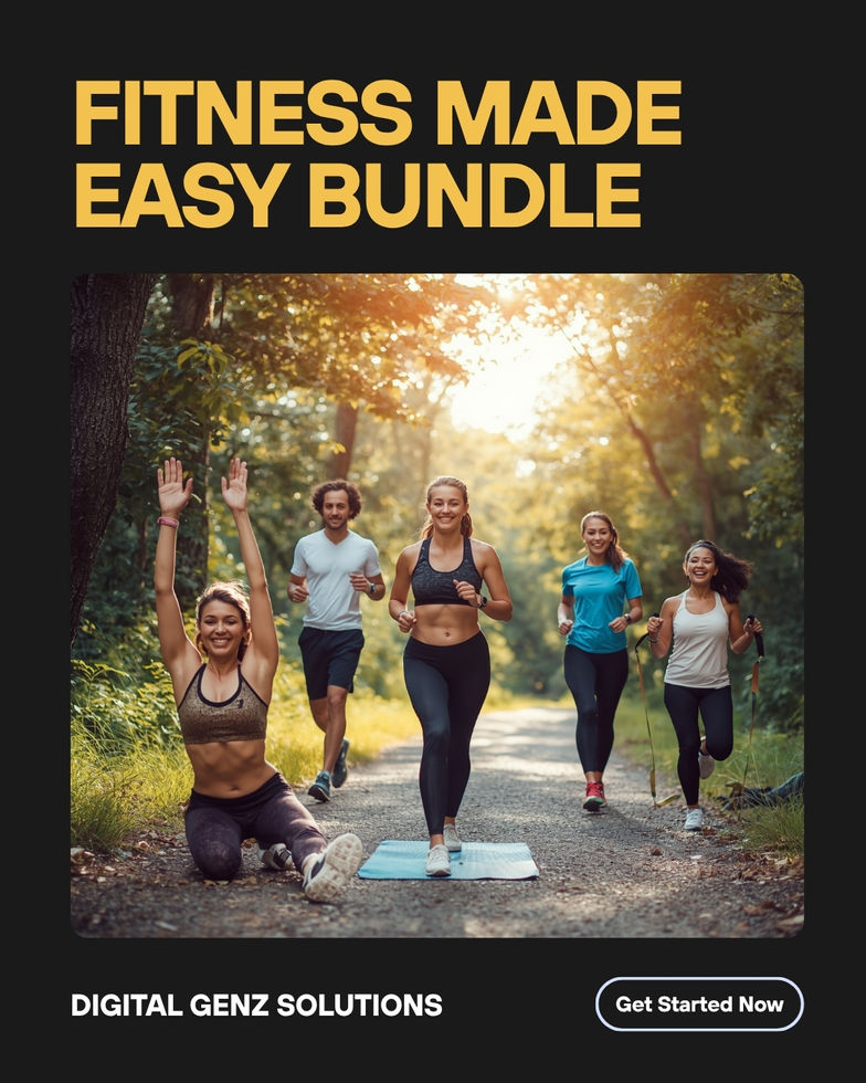A complete fitness and energy bundle featuring an ebook, mini-course, podcast, guide, and listicle. Learn to stay fit, boost focus, and build sustainable habits without burnout. Perfect for busy lifestyles, this bundle helps you achieve results with simple, effective systems—no hustle. Fitness Without Hustle, available at Digital GenZ Solutions, empowers you to optimize health and energy through practical, burnout-free strategies tailored for modern, busy lives.